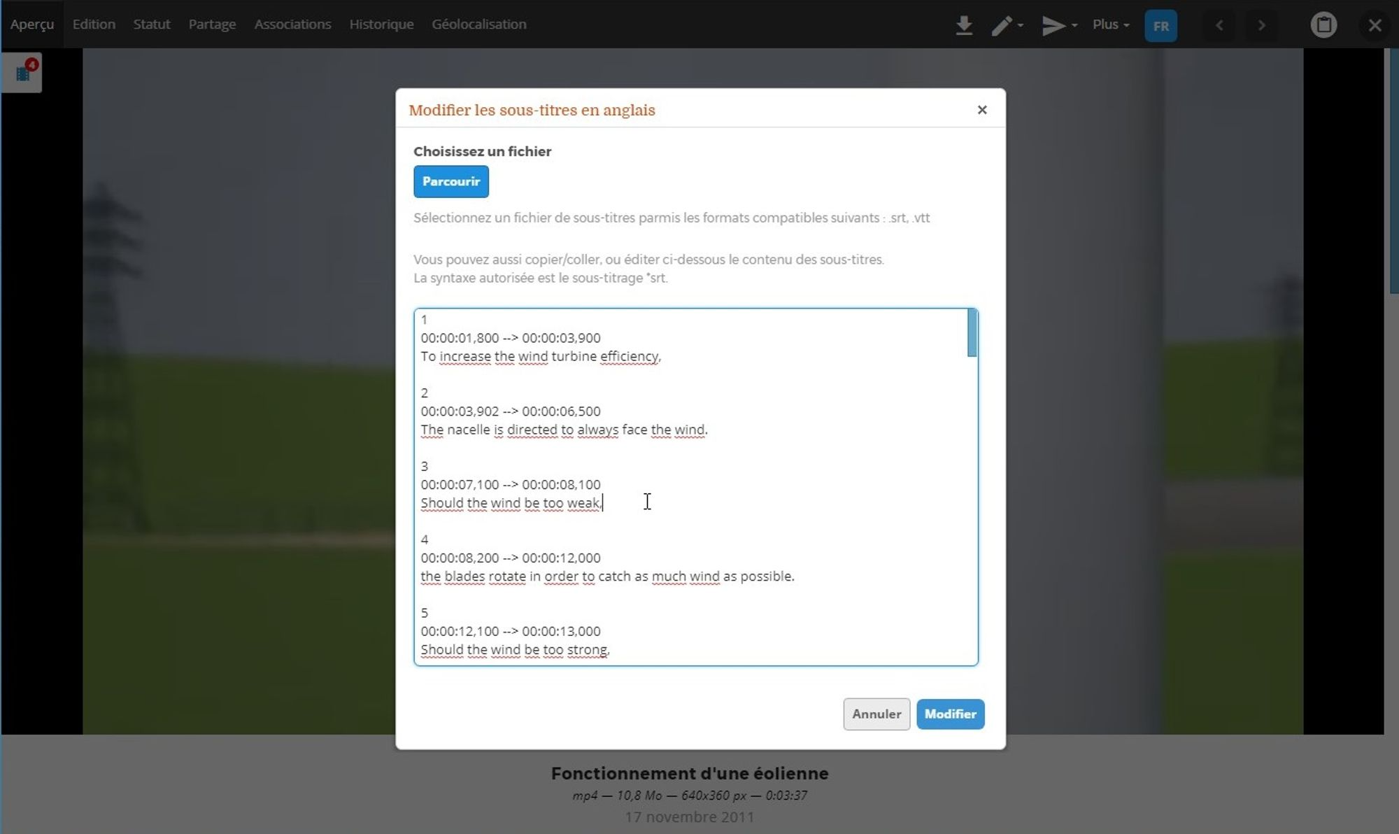 - Enter the subtitles manually in the text field, following the .srt syntax.
