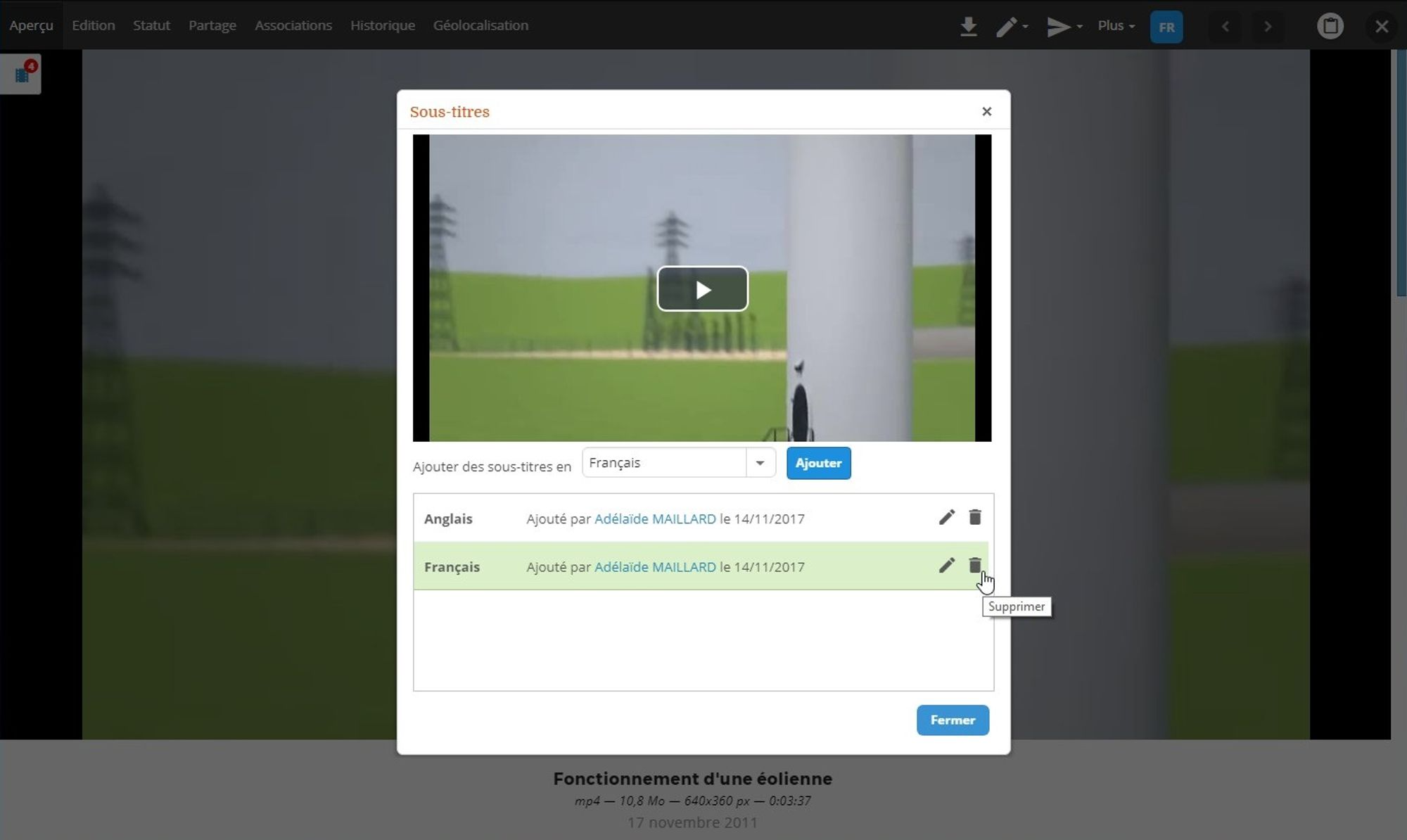 - Click the delete icon for the language of your choice. A pop-up appears asking for confirmation.