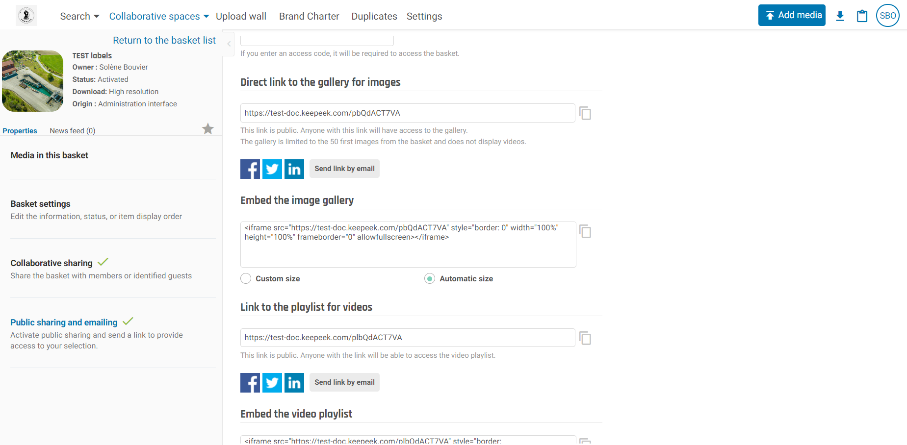 Enable public sharing of the basket.