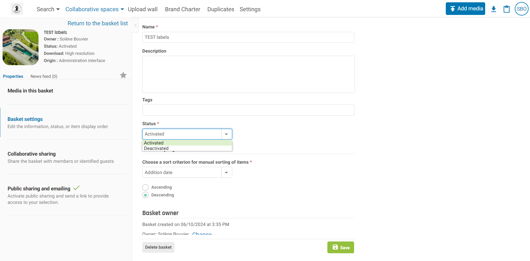 Keepeek - Archiving a basket