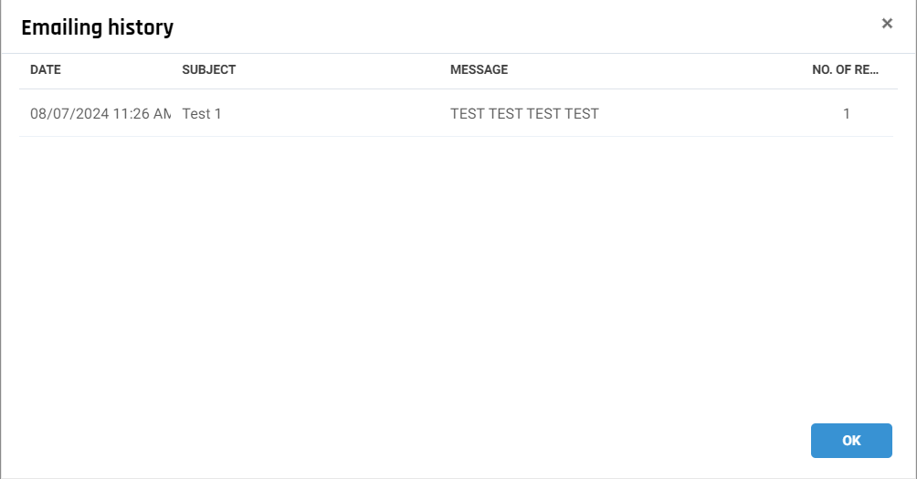 - Select the emailing of your choice. The list of recipients and the message sent will be displayed.