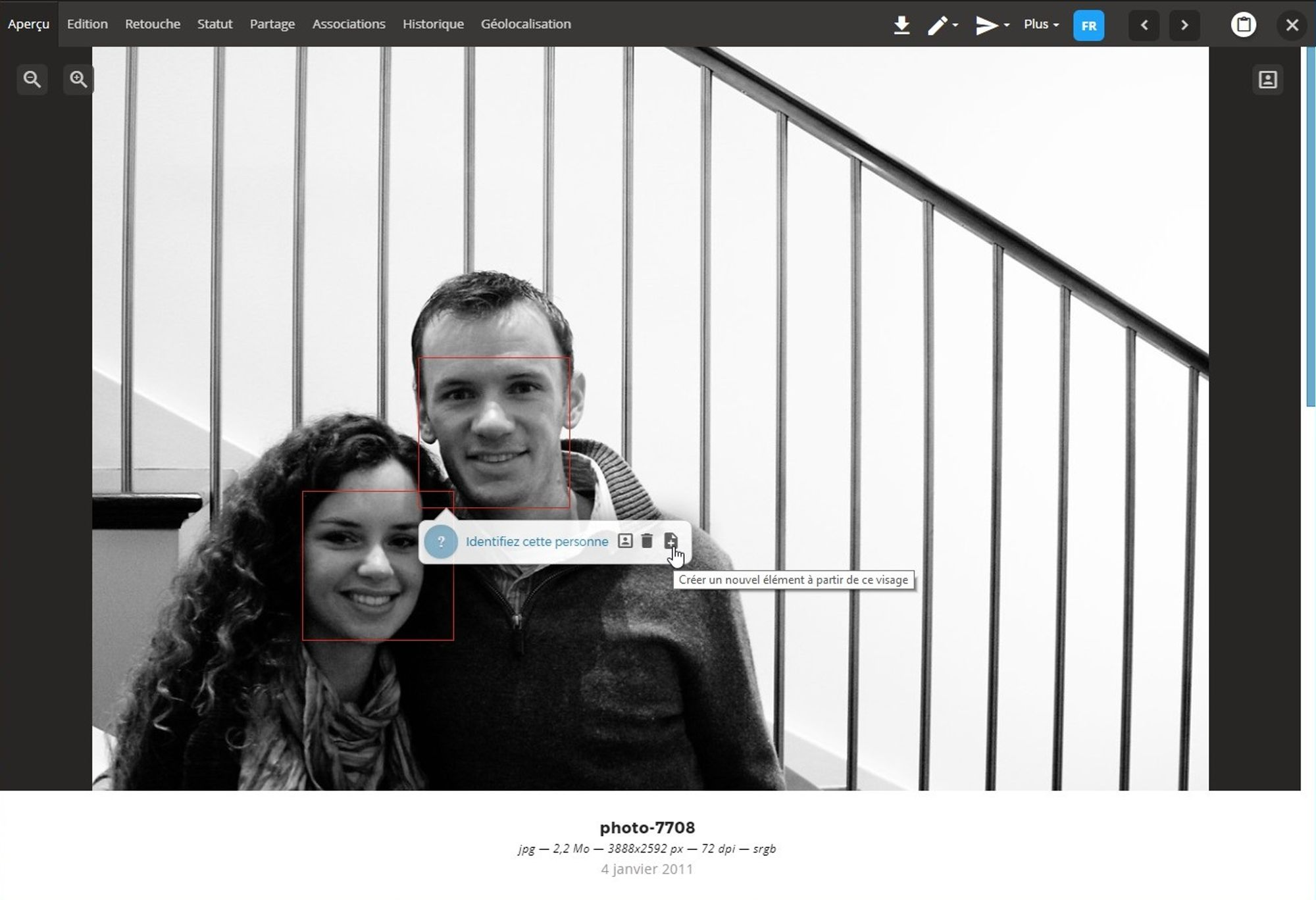 - Survolez le visage et cliquez sur l’icône Créer un nouvel élément à partir de ce visage. La nouvelle image est créée dans votre mur des imports. Une pop-up vous propose alors de consulter le nouvel élément.