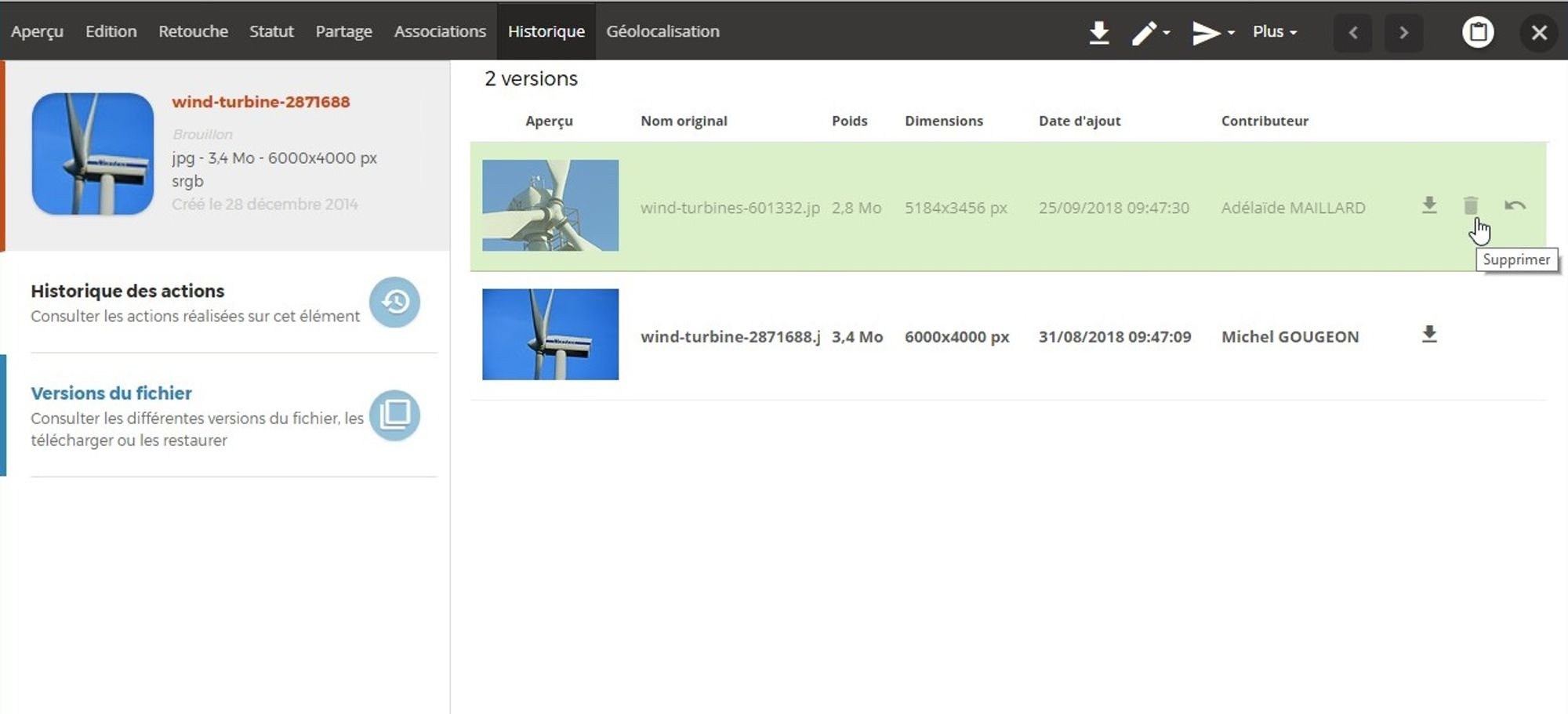 - Cliquez sur l’icône de suppression de la version de votre choix.