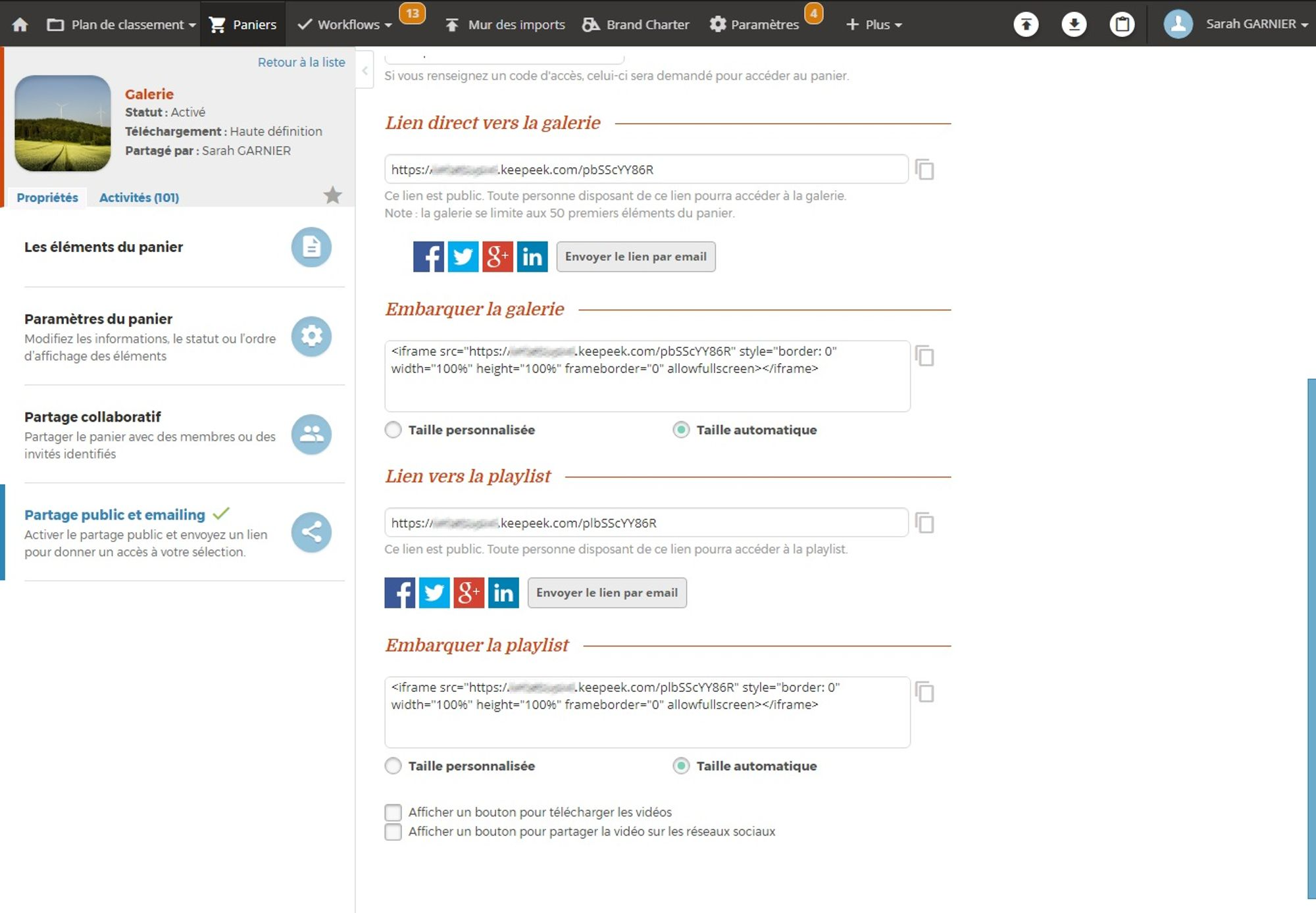 - Copiez le lien direct vers la galerie ou le code HTML à embarquer dans la page web de votre choix.